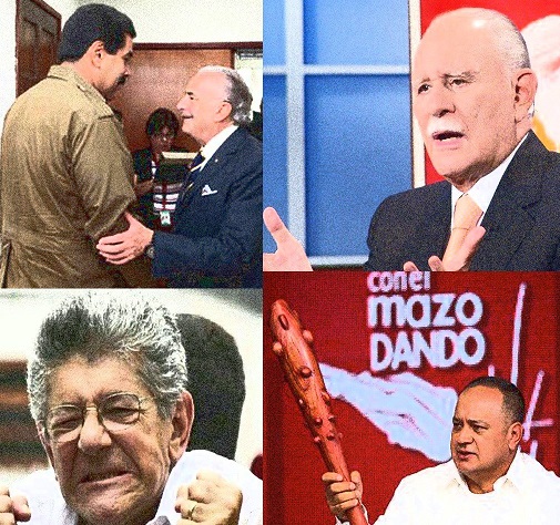 Esta fusión es ya un fenómeno de musiquita mundial donde se borran las diferencias izquierda-derecha globalmente, pero en Venezuela ese mismo fenómeno que se produce en medio de un chantaje permanente hasta de guerra civil, insurgencia golpista, represión total, y cualquier cantidad de mensajes de choque y violencia, sirve para acoplar perfectamente dos enemigos a muerte. Es el orden constituido totalmente decadente institucionalmente, pero brillante a la hora de ordenar hasta todo su potencial de guerra civil interna. Por ello en proporciones cada vez más gigantescas opositores y chavistas del abajo popular ya dejan de odiarse tanto entre sí pasando su indignación total hacia sus propios autodeclarados dirigentes. Solo esto –el odio hacia los de arriba del mismo bando y no solo a los de la acera del frente– dentro del folklore político nacional es la cualidad realmente nueva de los tiempos de Nicolás Maduro.