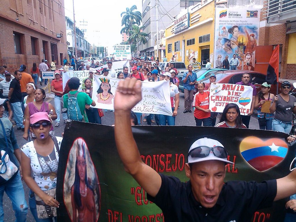 Lara 08 de Diciembre de 2014.- Comuneros y comuneras, organizaciones sociales, movimiento popular en general marcharon este Lunes desde la Defensoría del Pueblo hasta la plaza La Justicia para exigir la liberación de David Díaz, luchador social de la Comunidad Socialista Guerrera Ana Soto, ubicada al noreste de la ciudad de Barquisimeto, que fue privado de libertad en el estado Cojedes cuando se dirigía a un encuentro en Caracas con las Salas de Batalla.