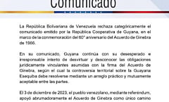 Venezuela denuncia tergiversación de Guyana y ratifica vigencia del Acuerdo de Ginebra