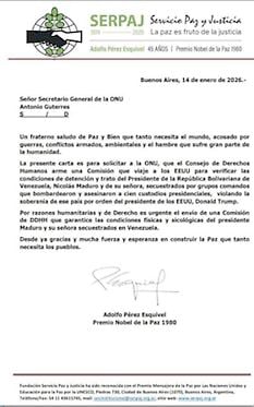 Pérez Esquivel solicita a la ONU que envíe comisión para verificar condiciones de Maduro