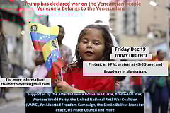 "Hoy: Manifestación en Nueva York en defensa del pueblo venezolano. ¡No a la guerra contra Venezuela!"