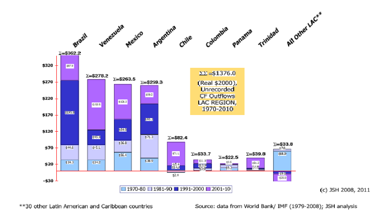 Tabla 2, Fuga de capitales en miles de millones de dólares de EEUU