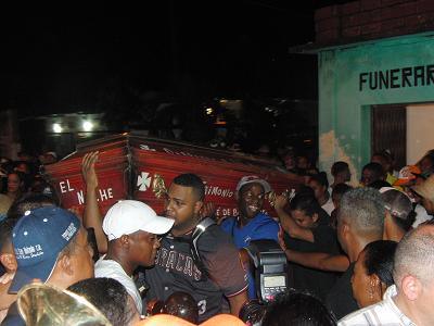 Siempre ella esperaba en el portón de su casa, ahí entre el puente y el río …nos abrazaba desbordaba de alegría …cuando me muera no me olviden nos decía hace una década atrás cuando iniciamos esta manifestación festivo espiritual …Guillermina, para quien no lo sepa, fue una de las pioneras en echarse la urna a su hombre y cargar a los muertos. Tenía como colaboradora a Cruz Ribas, con quien frenteaba el féretro. Ambas, sin previo ensayo, cronometradamente sabían los movimientos de cómo pasear el muerto. Con profundidad sabían como bailarlo. Guillermina era ese tipo de mujer que no ponía barrera entre la muerte y la vida. A parte de saber bailar el muerto, sabía llorarlo. Sabía en qué momento entonar los desgarradores gritos, caer con gestos epilépticos que contagiaba a los amigos y familiares del o de la difunta, que también irían cayendo al suelo. Otros inmediatamente le echaban valeriana. A los que caían casi como muertos se les echaba cuerno de siervo. Otras eran cargadas y llevadas a rastras a la primera tumba para darle socorro. Guillermina alzaba los brazos, lanzaba la mirada la cielo, al sol, a los lados, no sé cómo hacía para que salieran sus torrentes de lágrimas sin echarse cebolla en los ojos. Su toalla sudorosa la bandereaba al viento. Veía con recelo a aquellas mujeres que caían en ataque de histeria gritando ante la urna del muerto “llévame contigo” …no me dejes manito … pero cuando la urna llegaba a la fosa nadie se tiraba …una vez Guillermina me dijo: “esa gente que se pone así ni por el carajo que se meten en el hoyo”. Más de cien entierros tenía en récord de cargar muertos …sin equivocación, creo que ha sido la mujer de nuestro Barlovento, y tal vez a nivel nacional, que más ha bailado en su féretro a un difunto o difunta. Por eso la parranda que saldrá el 30 de diciembre debe ser en homenaje a esta valerosa mujer, quien además era parte activa de las antiguas batallas que se daban en el dia de los Inocentes.
