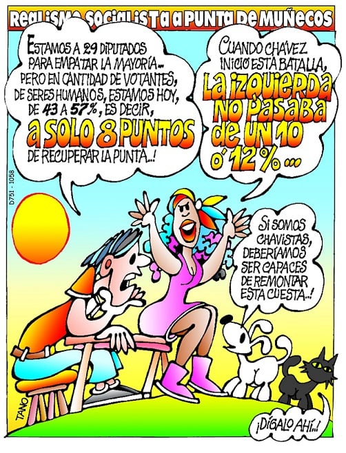 Dándole esa vuelta, hice pues el dibujo para manifestar el alerta, la advertencia, porque creo que la forma de decir eso debió ser "yo quiero mantener los beneficios sociales, y por eso pido tu apoyo, tu ayuda, para que con tu respaldo y lucha junto a mí, yo intente ver cómo mantener, pese a la baja del petróleo, la construcción de viviendas y todos los beneficios sociales que te ha dado la revolución…"