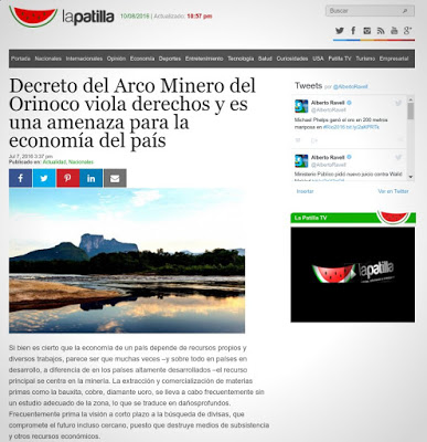 Y uno puede ser crítico con los medios públicos venezolanos, pero los que dan auténtico asco son los medios de extrema derecha, como La Patilla, Caraota Digital, El Nacional, El Estímulo, El Cambur y similares. Medios que jamás le han dado espacios a los ambientalistas y ecologistas, y mucho menos cuando hay que denunciar una empresa privada o una multinacional. Medios para quienes el Arco Minero no existía, hasta que se encontró una forma de usarlo para atacar al gobierno de Maduro. Y ahora sí fingen ser ecologistas: