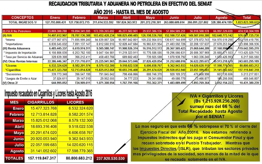 En el cuadro que sigue, los fumadores y bebedores podran ver cúanto han aportado al Presupuesto Nacional hasta el mes de Agosto: