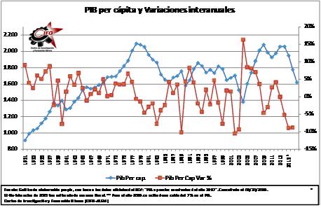 Gráfico 1, PIB per cápita con variaciones interanuales (eje derecho)