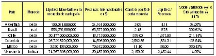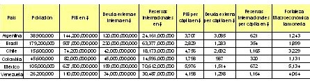 con datos actuales emanados de los Bancos Centrales de cada país.