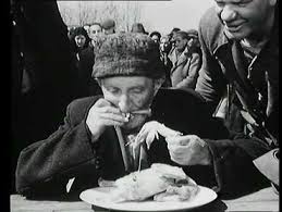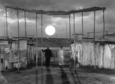 De Sica los crea y ellos se juntan. Toto no encuentra trabajo y debe reunirse con los desposeídos que habitan un yermo o más bien una ranchería, apretujándose para disputarse el único rayo de sol que alumbra las mañanas o juntándose para ver cómo devora el pollo sorteado en una rifa el ganador, que deja hambrientos a miles.