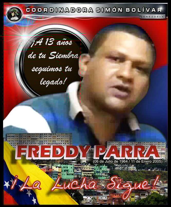Es difícil expresar todo lo que era nuestro compañero Freddy Parra. Las palabras no pueden describir al revolucionario, al amigo incondicional y al hombre íntegro que fue. Sin embargo compañero, queremos rendirte este pequeño homenaje para que todo el país sepa de tu esfuerzo, de tu lucha, de tu amor por todos.