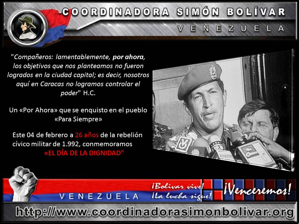 El alzamiento y la insurrección popular ocurridas el 27 y 28 de febrero de 1.989 fue el antecedente que dio origen a la rebelión militar del 4 de febrero de 1.992, y ambos acontecimientos dieron inicio a la Revolución Bolivariana, lo que significó la esperanza para Venezuela, América Latina y el mundo.