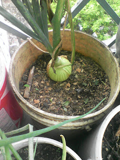 Mire la foto: la cebolla no es nada remilgada. Parió en un envase recogido en un basurero. Ese envase debe tener una capacidad al menos para tres o cuatro litros. Sencillo: mientras usted trabaja, relincha o vegeta no se sabe por dónde, acordándose de regarla cada dos días y de aplicarle compost cada dos semana, un alimento toma forma en la naturaleza para su mesa.