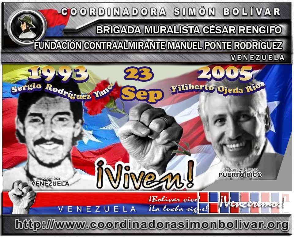 En ese mismo año, un 23 de septiembre, Sergio, participa en una marcha que es convocada por las universidades del todo el país, para pedir un presupuesto justo, en donde se incorporan unas 13.000 personas, alegres y entusiastas, que marchaban cantando y bailando. Estos jóvenes se encontraron a su paso con cientos de policías armados, suyo objetivo era impedir, a sangre y fuego, que prosiguiera la marcha, y es en esa afrenta donde "El Flaco", cae asesinado. Nuestra otra historia es la de Filiberto Ojeda Ríos (26 de abril de 1933- 23 de septiembre de 2005) quien fue el "Responsable General" del Ejército Popular Boricua, mejor conocido como los Macheteros, con base en Puerto Rico y una considerable cantidad de militantes en los Estados Unidos continentales.