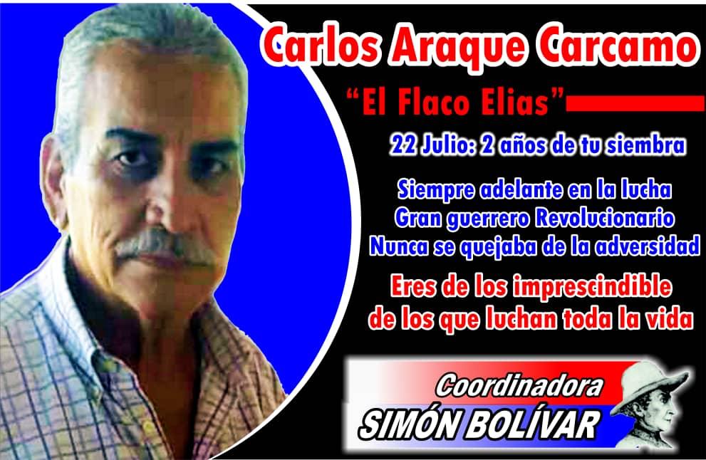 El 22 de julio de 2018, a las 3:30 de la mañana ha dejó de latir uno de los corazones más fervorosos de la revolución venezolana, "CARLOS ARAQUE CÁRCAMO" falleció luego de batallar contra una penosa enfermedad que no logro apagar ni su entusiasmo ni su confianza en que la revolución socialista triunfe de manera definitiva.