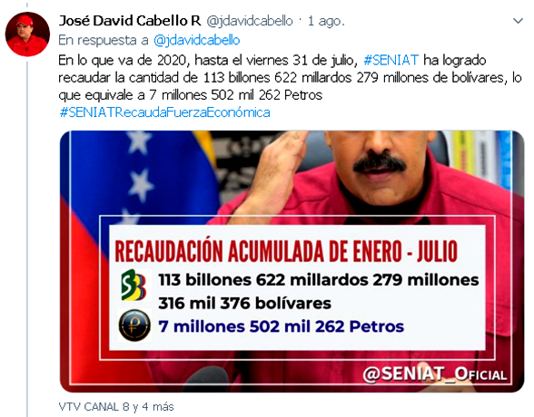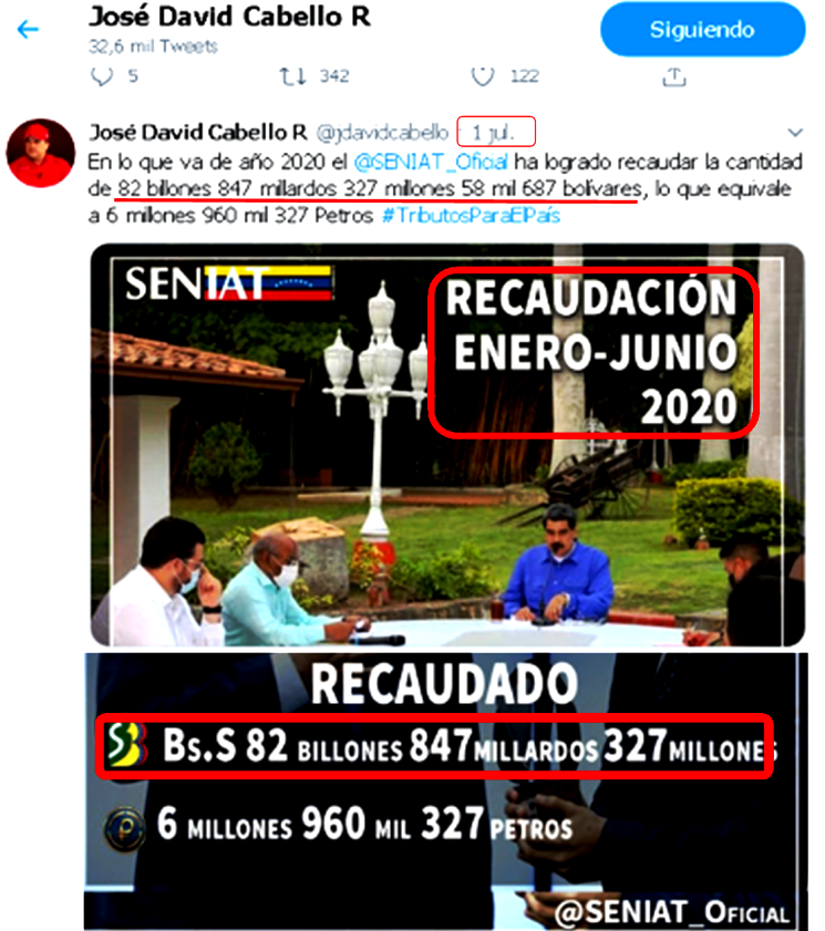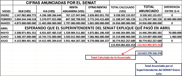 El Seniat que anteriormente publicaba en Excel (sin errores numéricos) las cifras mensuales de recaudación en su página web, ahora lo sustituyó por los reportes inconsistentes, vía twitter, del Superintendente David Cabello.