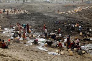 Refugiados cavan por agua en un abrevadero seco en el campamento de Jamam (Alto Nilo, Sudán del Sur). Fuente: Jared Ferrie / IPS