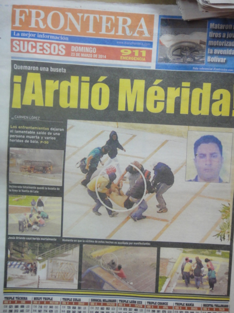 - En lo particular, mi esposa y yo, por la mañana del 10 de febrero de 2014, nos encontrábamos a nivel de la plaza Glorias Patrias, y desde allí, divisábamos otras enormes membranas auditivas con un Cronos en el firmamento, un Zeus con fornidas antenas parabólicas. Torcimos por la avenida Tulio Febres Cordero, por los lados de la Facultad de Medicina, con la ciudad mostrando un fúnebre aletargamiento; de cuando en vez, aparecían grupos de dos o tres seguidores de Voluntad Popular agitando banderas extrañas o llevando, cauchos y pimpinas de gasolina para las grandes hogueras. No vi a un solo guardia o policía en todo el trayecto.