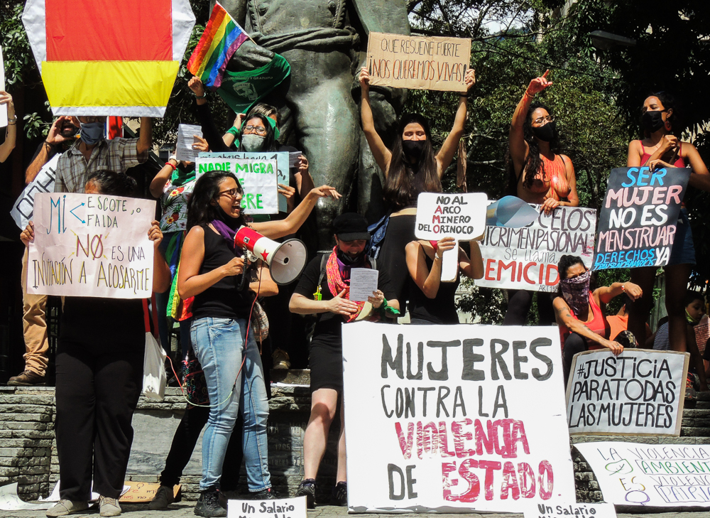 Las organizaciones que defienden los derechos de las mujeres también han emergido durante el 2021, denunciando los masivos índices de impunidad frente al aumento de los feminicidios, así como la asociación entre los victimarios y grupos de poder. Uno de los casos más relevantes que conmocionó por unos días la opinión pública nacional, se trató de la desaparición, tortura y asesinato de Dorialcely y Martha. El 24 de mayo Dorialcely lidera una protesta de trabajadoras sexuales en la población minera del Callao (en el territorio regido por el decreto del Arco Minero del Orinoco) para exigir mejores condiciones de vida al alcalde del partido de gobierno Alberto Hurtado (quien años antes había sido acusado de recibir apoyo de la minería ilegal en su campaña electoral). Dorialcely denuncia al alcalde en un video que se viralizó en redes sociales, y dice públicamente que lo responsabiliza si llega a ser asesinada, horas después desaparecen y un día después aparecen los cuerpos violentados y sin vida de las dos mujeres. La atrocidad del asesinato, la relación con las mafias locales y la presunta vinculación con el alcalde, generó una ola de denuncias convocada por el movimiento feminista “Mujeres contra las Violencias” (Correo del Caroní, 2021a). Aunque el alcalde fue removido posteriormente, no se ha desarrollado la investigación judicial y el caso ha quedado impune y silenciado.