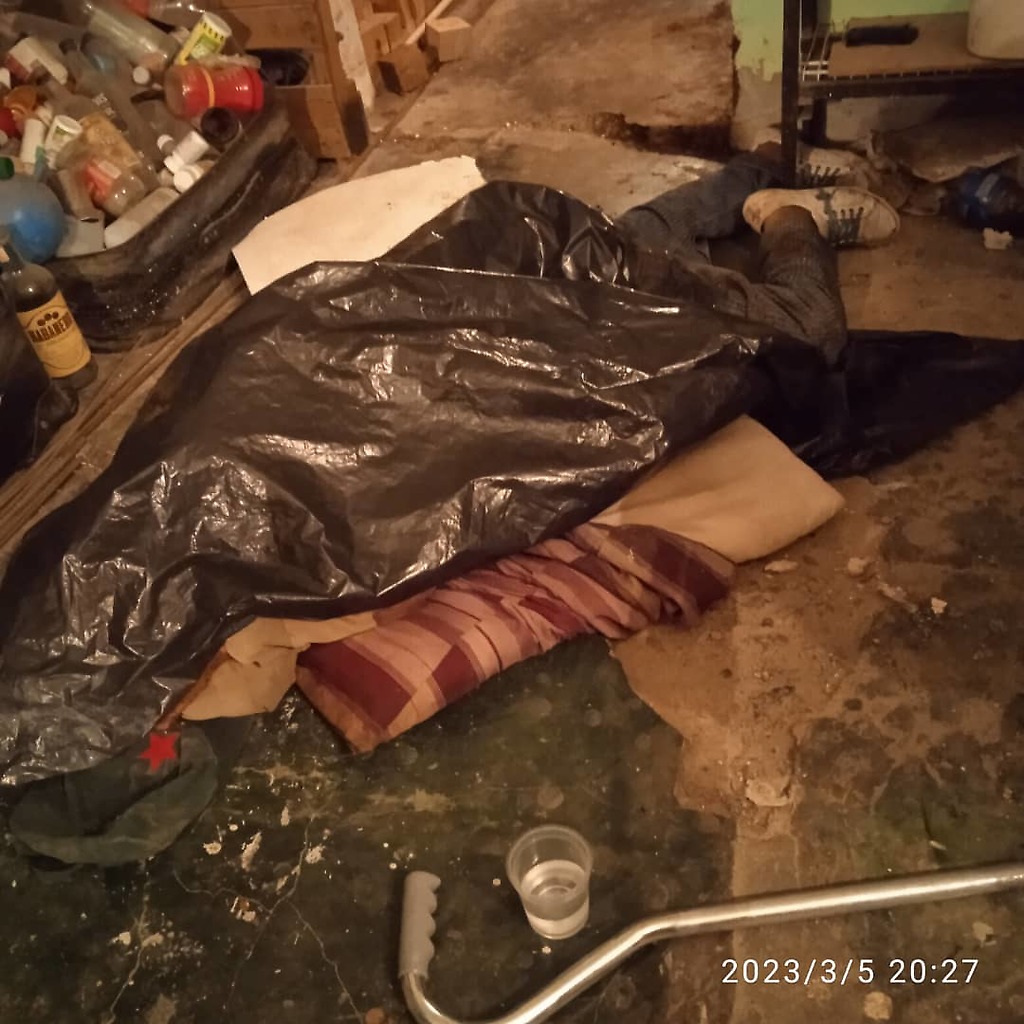 Mi amigo del piso de mi taller, en su pozo de mierda y vómito, lo cual tendré que eventualmente lavar cuando pueda pararme de mi cama, no puede ni moverse, ni puede sentarse, ni puede caminar, y yo tampoco puedo ayudarle, hago lo posible, pero no puedo hacer mucho, solo puedo atenderle unos 5 minutos a la vez cuando puedo pararme de la cama, y nada más (estoy muy enfermo).