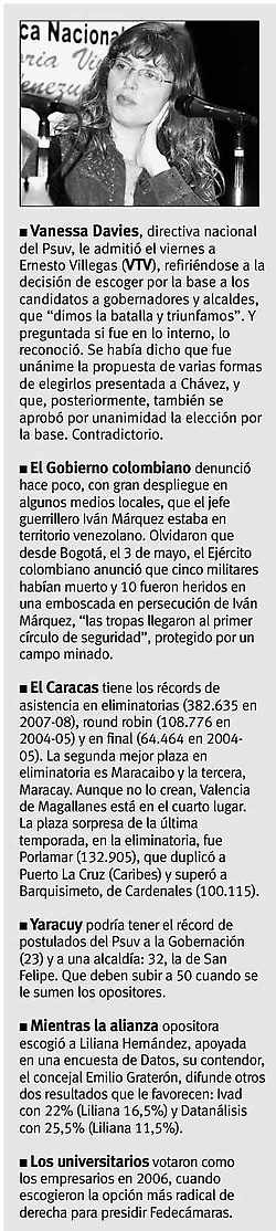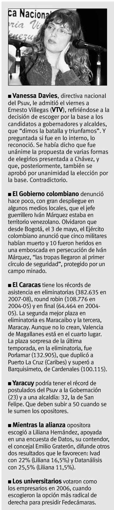 La composición de la Asamblea Nacional la refleja, pero generosamente. Solos, seguramente los tres menores no tendrían fuerza para elegir a uno solo de los suyos como gobernador, y el mayor aliado perderíaentidadesquehoyestán amenazadas. Juntos son una fuerza decisiva para garantizar triunfos que el Psuv no obtendría sin ayuda. En estas tan trascendentes e importantes votaciones del 23N están obligados a entenderse. Los dos se necesitan como nunca antes. Uno observa, sin embargo, que pese a todas las declaraciones anteriores, parecen interesar a los aliados menores las cuotas de participación, y para alcanzarlas, todos los medios son útiles, incluidos los de comunicación.