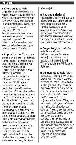 Para Chávez y el chavismo esos cinco millones de venezolanos que votaron por el No -un millón más que cuando Fidel hizo la reflexión-, son un desafío en el sentido democrático del término. Las opciones ante el fenómeno serían desestimar ese caudal apreciable de votantes y darle respuestas irracionales, o analizar el porqué de su volumen y, sobre todo, de su crecimiento en zonas populares.