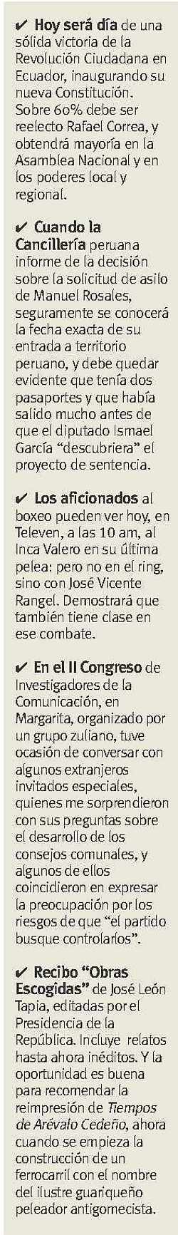 -Se negociarán concesiones de ambos lados, y seguro que habrá un acuerdo, entonces Chávez quedará solo-, respondió.