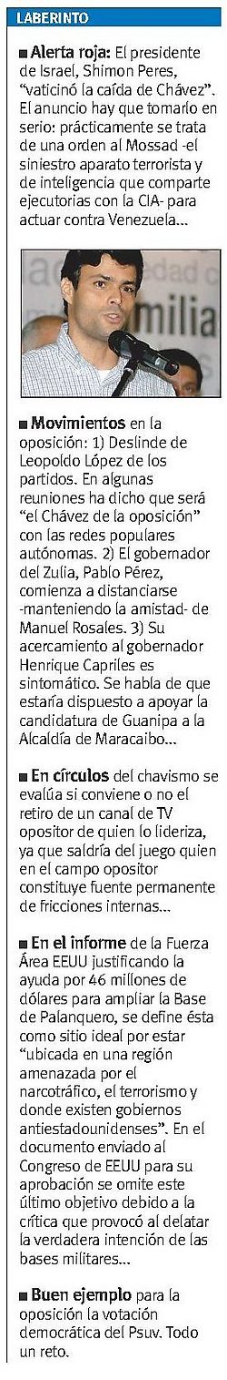 Porque cuando uno observa a los autores materiales e intelectuales del golpe de abril con el odio intacto, añorando lo ocurrido y sin propósito de enmienda; cuando se les ve apoyando el golpe en Honduras, guardando silencio ante la instalación de las bases militares norteamericanas en Colombia que apuntan directamente a Venezuela y solidarizándose con Uribe y repudiando a Chávez, flaquea la esperanza.