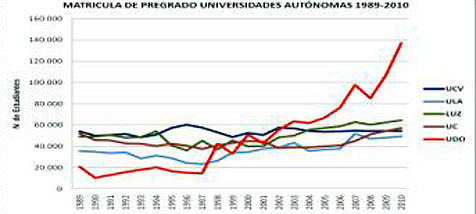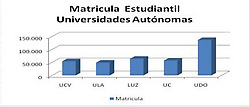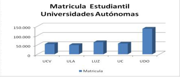 Cabe destacar que la Universidad Central de Venezuela con un presupuesto mayor al de todas las universidades del país, solo matricula al 2.72% de estudiantes a nivel nacional. En este sentido es importante resaltar que para el ejercicio fiscal 2010 a estas cinco universidades autónomas se asignó el 54.87% del presupuesto Nacional para la Educación Universitaria, mientras estas casas de estudio solo matriculan solo 18 % de los estudiantes del país.