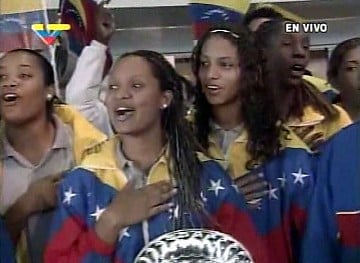 La ministra del Poder Popular para el Deporte, Victoria Mata, y el director del Seniat, José Vielma Mora, figuran entre las personalidades que recibieron a las y los atletas.