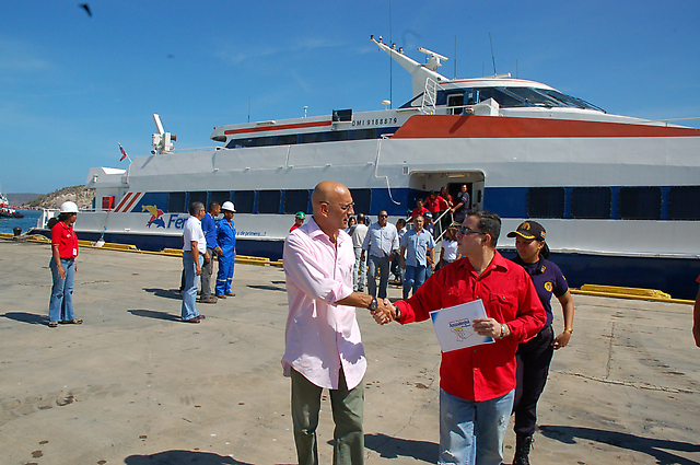 Acompañado por el General (AV.) Héctor Valencia, presidente de la empresa Ferryven; Antonio Tovar, presidente de Puertos de Anzoátegui, entre otras autoridades e invitados, el Primer mandatario regional decretó el estreno de Ferryven, la cual entrará en funcionamiento este viernes 01 de febrero con los barcos "Pespes" y "La Chulinga", en sus respectivas salidas al Puerto El Guamache, de 7 de la mañana y 01 de la tarde, mientras que en su retorno al muelle de Guante se estableció el horario de 10 de la mañana y 04 de la tarde.