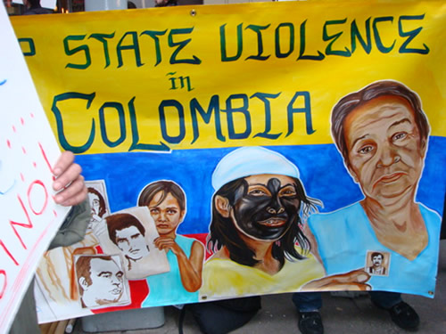 Los manifestantes pidieron paz para Colombia y un cese a la ayuda militar estadounidense. Tambien exigieron un cese a la violacion de los derechos humanos por parte de los paramilitares y del estado colombiano, justicia para los desplazados y reparacion para las victimas y familiares de los desaparecidos politicos. Igualmente se manifestaron por el canje humanitario.
