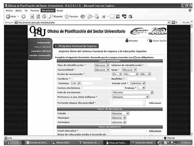 Caracas 18 de marzo 2008 / Julia Montoya se conectó a la página de la Oficina de Planificación del Sector Universitario (Opsu) en plena medianoche del lunes. Montoya es la coordinadora del Programa Nacional de Ingreso a la Educación Superior y era parte de su trabajo, pero junto a ella otro grupo de estudiantes probó la dirección web en el primer día del nuevo sistema de aspirantes universitarios.