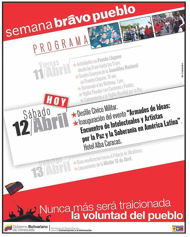 El Presidente venezolano también instó a sus seguidores a “fortalecer la unidad revolucionaria para seguir derrotando a los golpistas”. Resaltó la labor de los venezolanos y sus soldados durante los acontecimientos de abril de 2002, y ratificó su compromiso con la población. “Yo soy del pueblo y haré por el pueblo lo que haya que hacer”, enfatizó.