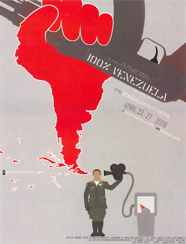 Caracas, 27 de abril de 2008.- El Centro Rey Juan Carlos de la Universidad de Nueva York (NYU) está celebrando, desde el 23 hasta el 27 de abril, la segunda edición del Festival de Cine Venezolano. En esta oportunidad decidió titular su festival con la pomposa frase: 100% VENEZUELA.