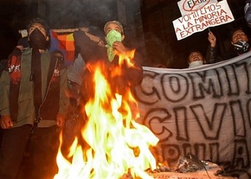 Los defensores del referendo ilegal dispararon fuegos artificiales para atacar a los simpatizantes de Evo Morales que se oponían al referendo (Foto: AP)