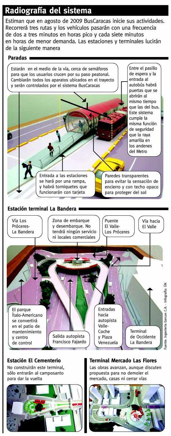 Caracas 15 julio 2008.- La construcción del sistema de transporte BusCaracas, según sus ingenieros, lleva un avance de 15%. Se trata de obras poco visibles (aceras, brocales, bancada central, remoción de pavimento, escarificación) a las que se suma la construcción de una de las estaciones.