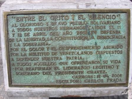 Viudas, huérfanos y sobrevivientes de la policía golpista en Puente Llaguno y otros lugares de Caracas el 11, 12, 13 y 14 de abril, ofrecieron declaraciones ayer junto al monumento conmemorativo que se levanta en el puente de la Av. Urdaneta sobre la Av. Baralt, a una cuadra del Palacio de Miraflores (Presidencia de la República).