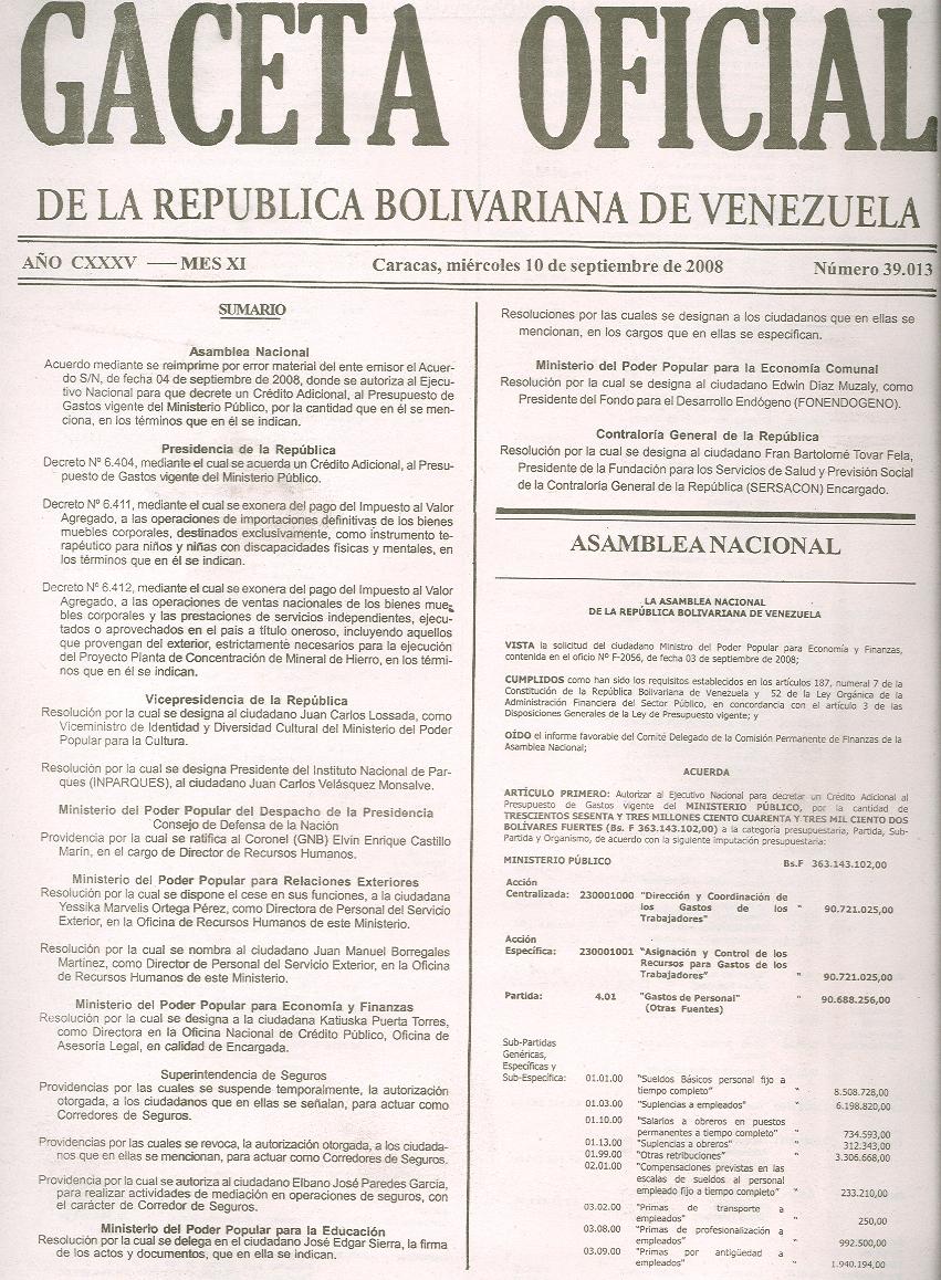 Gaceta Oficial 39013 miércoles 10 de septiembre 2008