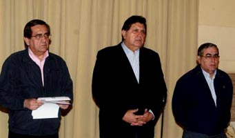 Las reacciones del Gobierno peruano no se hicieron esperar, el jefe del Gabinete Ministerial, Jorge del Castillo, fue el designado para anunciar en conferencia de prensa las tres Resoluciones Supremas, tomadas por el presidente Alan García.