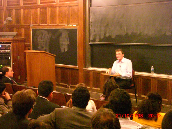 Chicago, 21 de Octubre de 2008.-Ante una mermada audiencia en la Escuela de Ciencias Sociales de la Universidad de Chicago, el político opositor venezolano y dueño del periódico Tal Cual, Teodoro Petkoff, brindó una conferencia denominada "Hugo Chávez y la realidad venezolana de Hoy", organizada por el Centro de Estudios Latinoamericanos de dicha universidad.
