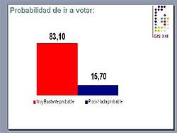 16 de noviembre 2008.- Según encuesta realizada por el Grupo de Investigación Social (GIS XXI) (Descargar), en el Distrito Metropolitano de Caracas, del 1 al 4 de noviembre de 2008, entre 866 personas, distribuidas proporcionalmente según el número de electores, 83,10% de los votantes tienen la intención de acudir a las urnas el próximo 23 de noviembre.