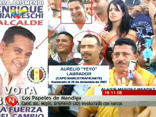 19 de noviembre 2008. - El candidato a la Alcaldía del municipio Arismendi del estado Sucre, por el partido Acción Democrática (AD), Enrique Franceschi, aparece en un video compartiendo amigablemente con los supuestos capos de la drogra, Aurelio “Yeyo” Rodríguez y Alexis Méndez / Estos presuntos narcos fueron asesinados