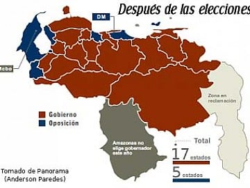 24 de noviembre 2008. - Las fuerzas bolivarianas dominaban en 15 estados y ahora lo hace en 17 (sin contar Amazonas). La oposicion dominaba 7 estados, ahora domina 5. Véalos con detalle y decida quién fue el derrotado.