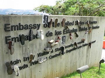 Caracas,19 de diciembre de 2008.- Diversos representantes de las organizaciones sociales caraqueñas se concentraron al frente de la embajada norteamericana en esta ciudad, para exigir la liberación del periodista irakí Muntazer al Zaidi y respeto a sus derechos. Como se sabe luego de lanzarle sus zapatos a Bush fue prontamente sometido por nueve hombres entrenados, quienes lo golpearon duramente y actualmente se encuentra detenido con amenaza de ser privado por su libertad por 7 años. A pesar de que la protesta fue pacífica al frente de la embajada gringa se encontraban una gran cantidad de efectivos policiales de la Alcaldía de Baruta y de la Policia Metropolitana y del cuerpo de seguridad norteamericano. Funcionarios de la embajada yanqui retiraron los zapatos pero los protestantes colocaron más de ellos en la entrada de la misma. Algunos de los protestantes dijeron que el 20 de diciembre se concentrarán en la plaza Brion de Chacaito para ir a la embajada a colocar más zapatos como una manera de protestar pacificamente para exigir la liberación del periodista.