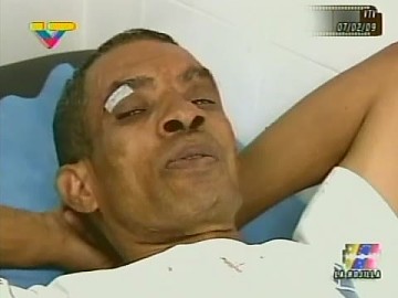 08 de febrero 2009. - El programa de VTV "La Hojilla" denunció este sábado que un grupo de opositores que marchaban contra la enmienda este sábado, agredieron brutalmente al chofer de un autobús que hace la ruta a Petare, por negarse a atravesar su unidad para trancar la vía. Le reventaron una ceja con una pieza de metal y le destrozaron el autobús.