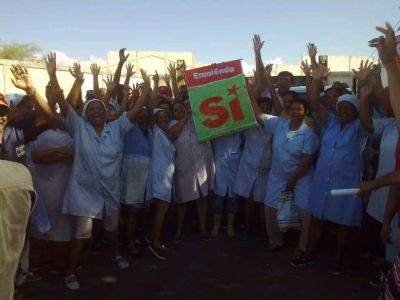 Por su parte José Antonio García señaló que en el Estado Sucre los trabajadores del sector privado ven la elección con mucha claridad, dice que entiende que la opción del Si identifica la lucha contra la explotación y por un país para todos, por el contrario la otra opción, el No la ven como la impulsada por el sector empresarial, o mas claramente por los ricos del país por lo que saben que apunta a los intereses de los poderosos. “Los trabajadores privados son los primeros en apoyar el Si”.