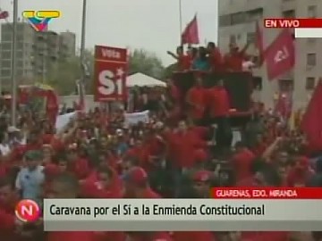 En una muestra de alegría revolucionaria los habitantes de Guarenas no sólo llenaron las calles sino que también, desde los edificios aledaños a la ruta de la caravana, sacaron banderas y afiches como muestra del apoyo a la enmienda que será sometida a referendo aprobatorio este domingo 15 de febrero.