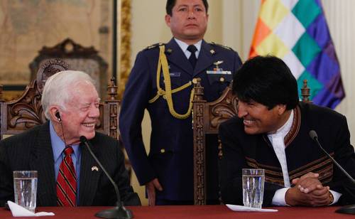 Carter, acompañado de su esposa Roselyn y miembros de su Centro Carter, visitó hoy el Palacio Quemado para sostener una reunión privada con Morales. Ambos mantienen una relación que data de muchos años. "Nos reunimos varias veces, pero el ex presidente Carter no quería fotos de los encuentros", dijo el boliviano.