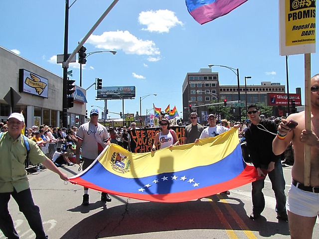 Chicago, 7 de julio de 2009.- El pasado domingo 28 de junio representantes del Consulado General de la República Bolivariana de Venezuela en Chicago, en solidaridad con los grupos que reivindican un trato no discriminatorio a partir de las preferencias sexuales, desfilaron portando el pabellón nacional en el desfile por el Orgullo Gay que se realiza anualmente en esta importante ciudad estadounidense.