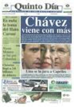 02 Agosto.- A esta redacción llegó una nota suscrita por el ciudadano Darío Carhuarupay Béjar, estudiante de Derecho en la UBV, donde se pone de manifiesto la libertad para calumniar, mentir y tergiversar, de la que hacen uso los medios de comunicación privados. El compatriota Carhuarupay, señala lo que él llama "información falaz del semanario Quinto Día".